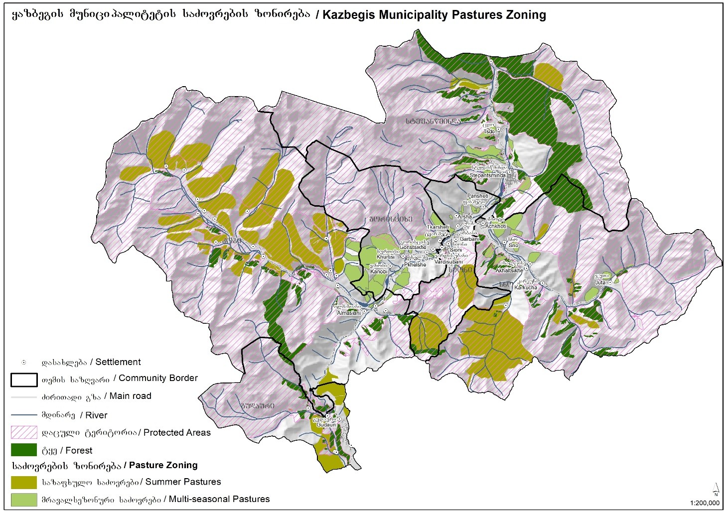 The Municipal Pastureland Planning approach was piloted in the municipalities of Dmanisi, Gurjaani, and Kazbegi on categorised pasture areas.